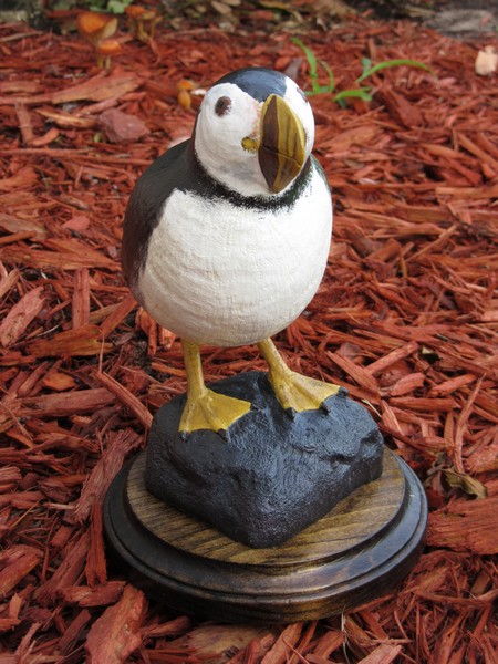 Using my "real" Puffin as a model, the shape was simple and worked up quickly. I knew the basic shape will need some very specific details to make this work... I'm not a bird carver! Painting Percy would become the key to making this carving work.